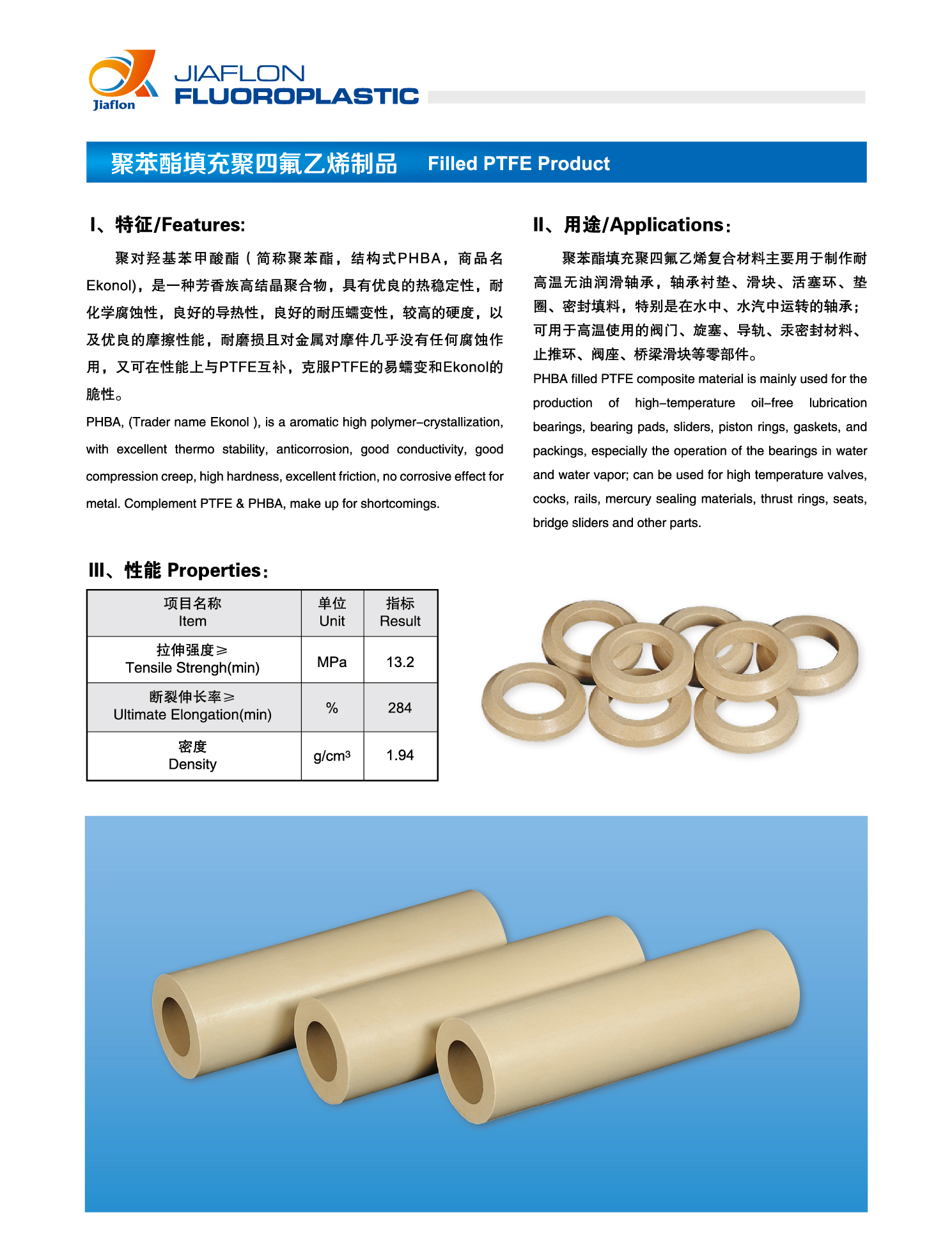 聚苯酯填充聚四氟乙烯制品(Filled PTFE Product)