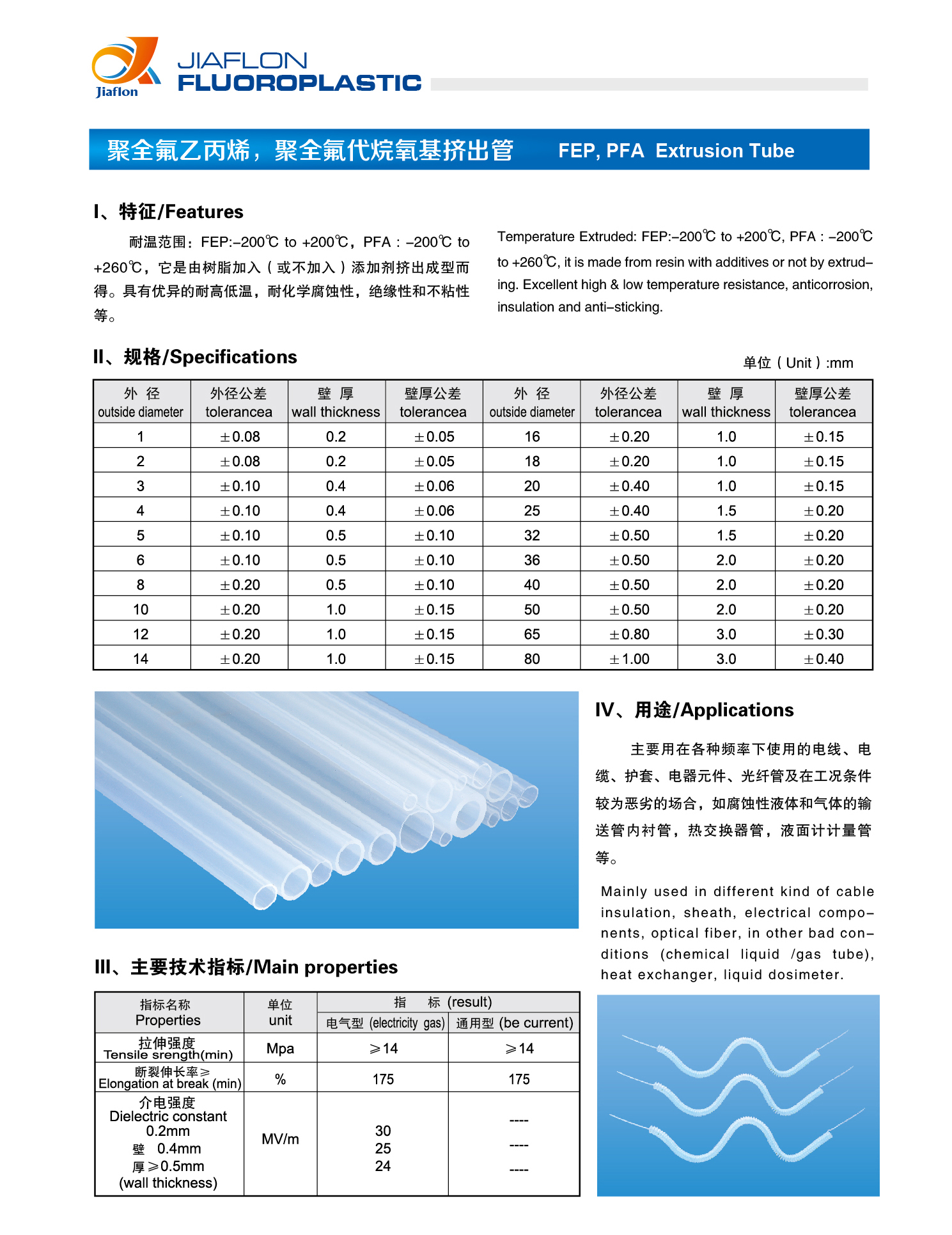 嘉翔氟塑 FEP/PFA 挤出管,以高纯聚全氟乙丙烯(FEP)、聚全氟代烷氧基(PFA)树脂为原料,经精密挤出工艺制成。产品完整继承了氟塑料**耐化学腐蚀、超宽温域、高绝缘、不粘洁净的核心特性,同时具备优异的机械强度与加工性,是电子电气、化工防腐、流体输送等领域的高端管材解决方案。