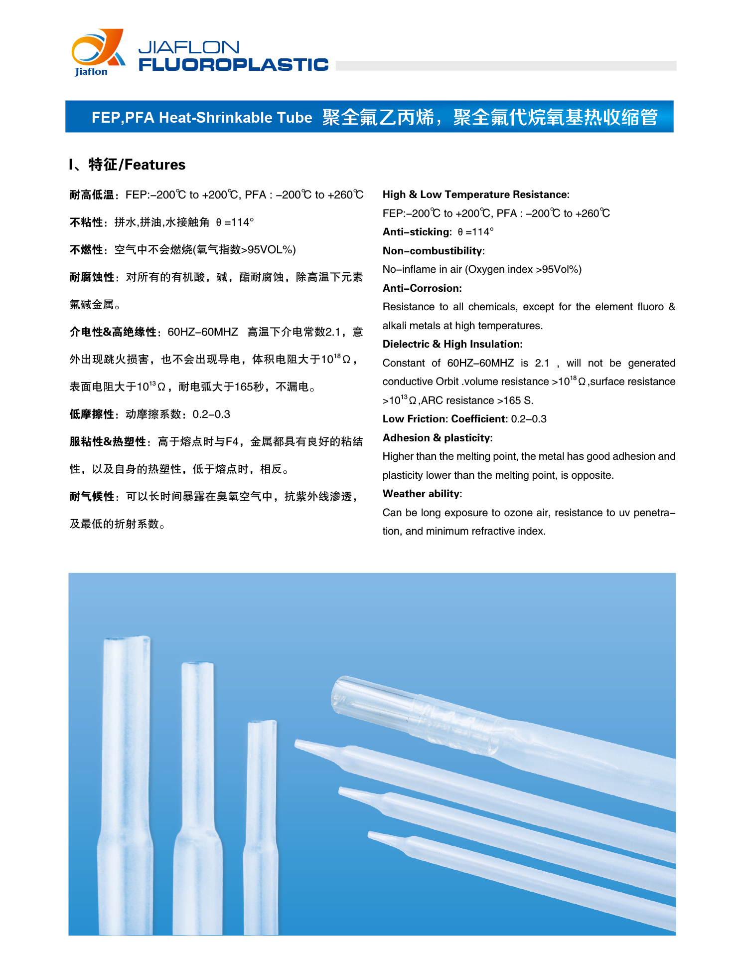 聚全氟乙丙烯 / 聚全氟代烷氧基热收缩管(FEP, PFA Heat-Shrinkable Tube)
