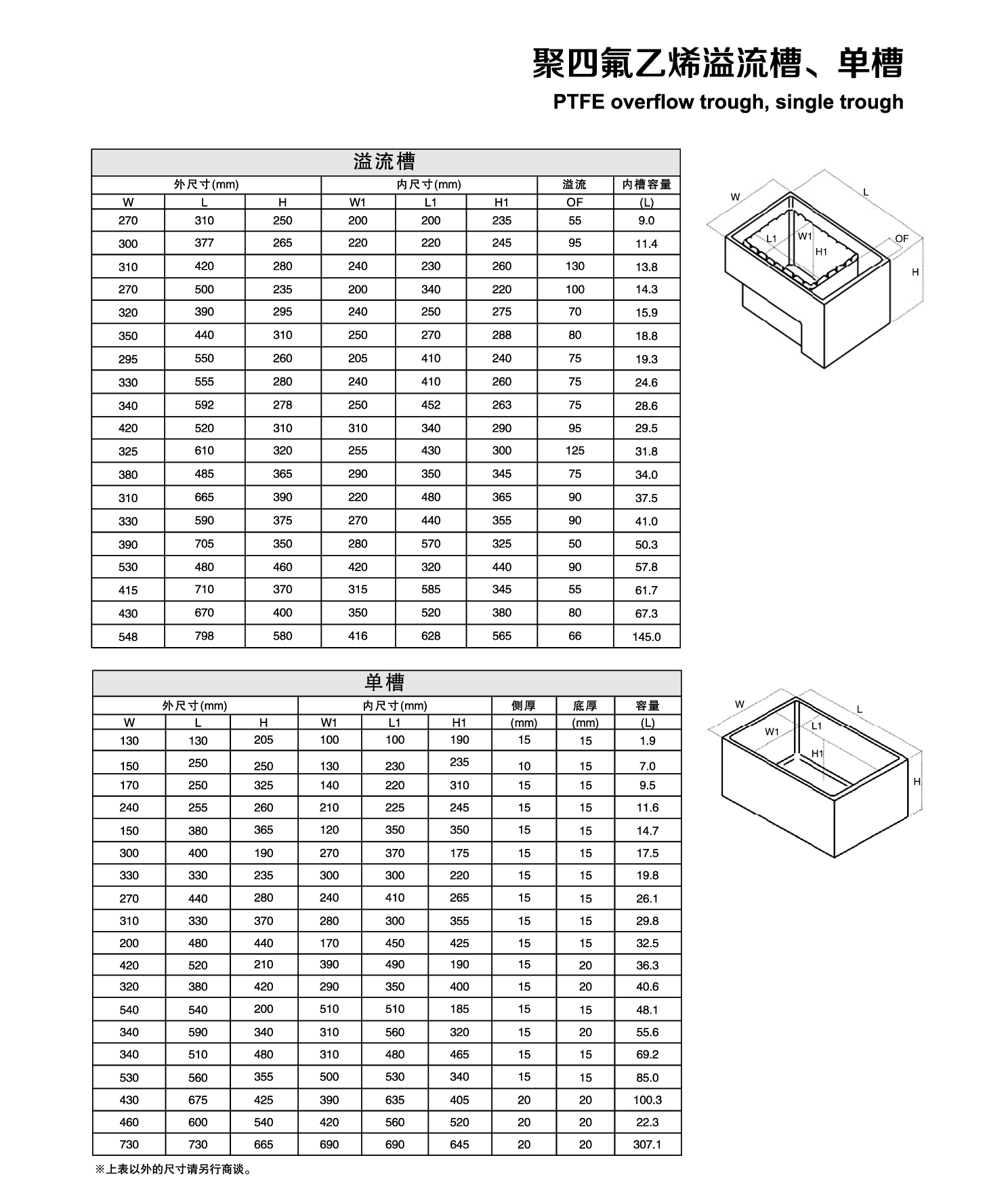 聚四氟乙烯溢流槽、单槽