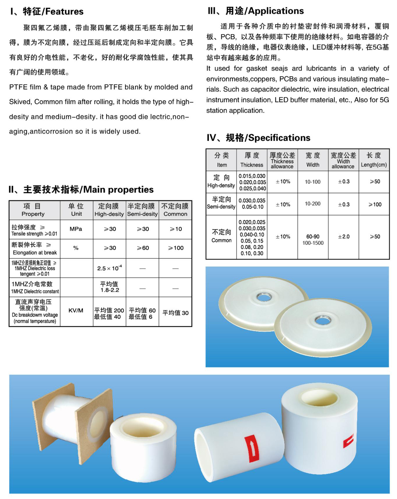 嘉翔氟塑 PTFE 膜系列,以聚四氟乙烯树脂为原料,经模压、车削、定向等精密加工制成。产品保留了 PTFE **耐化学腐蚀、耐高低温、不粘性、抗老化的核心特性,同时通过改性配方优化了机械强度、介电性能与热稳定性。全系列覆盖通用膜、5G 层压板膜、电子缓冲膜、改性复合膜、双面钠化膜、防静电膜六大类,适配半导体、电子电器、5G 通信、新能源等全场景,为高纯度、强腐蚀、高精度需求提供可靠材料解决方案。